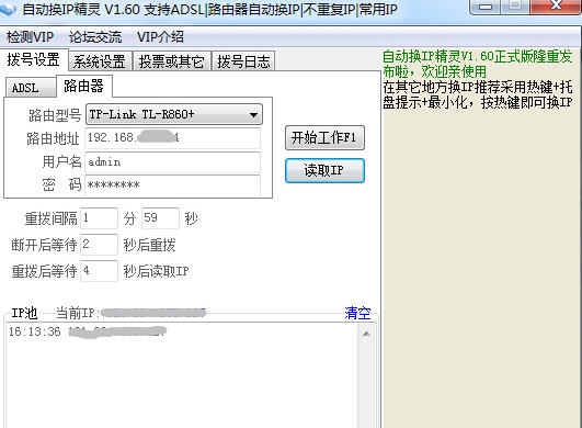 自动换IP精灵支持ADSL及路由器自动换IP,支持快捷键换IP,支持换IP直到常用IP,支持自定义投票操作。